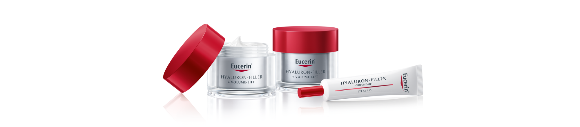 Серията Eucerin Hyaluron-Filler + Volume Lift е специално разработена, за да адресира загубата на обем, по-слабо дефинирания лицев контур, отпусната кожа и дълбоките бръчки. Формулата комбинира три активни съставки – Магнолол, Олигопептиди и Хиалуронова киселина – като запълва дълбоките бръчки и подобряват лицевия контур, придавайки лифтинг ефект. Кожата е видимо по-гладка и стегната.