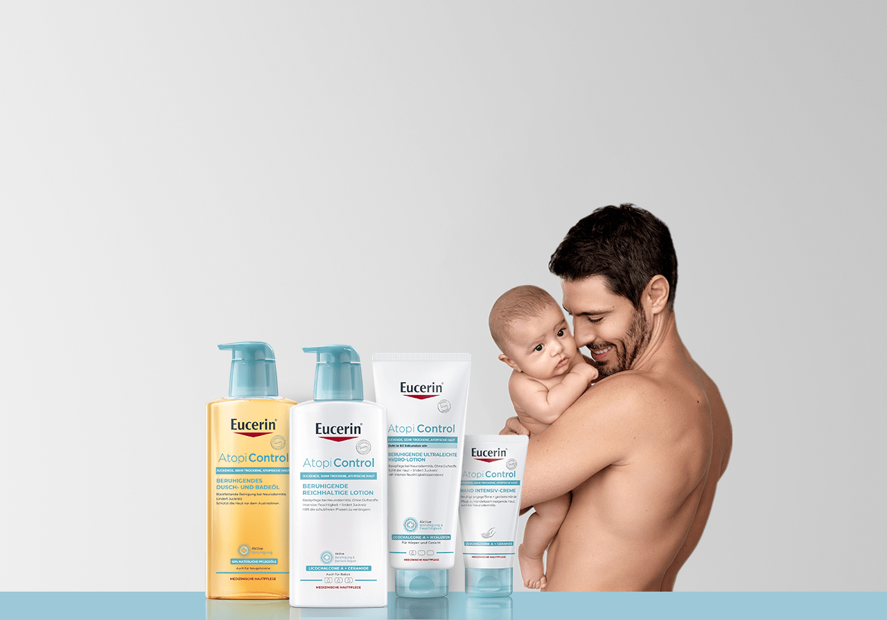 Атопичният дерматит – известен още като атопична екзема – е кожно заболяване, което прави кожата суха, зачервена, раздразнена и сърбяща. Тoзи сърбеж предизвиква чесане, което влошава симптомите и може да доведе до инфектиране на кожата. За овладяване на тези симптоми ние разработихме серията Eucerin AtopiControl. Атопичният дерматит може да повлияе и върху качеството на живота: постоянната сухота, зачервяване и сърбеж предизвикват дискомфорт и могат да доведат до безсъние и ниско самочувствие. Когато от заболяването страдат бебета и деца, родителите им могат да се чувстват безпомощни и да изпитват чувство за вина.