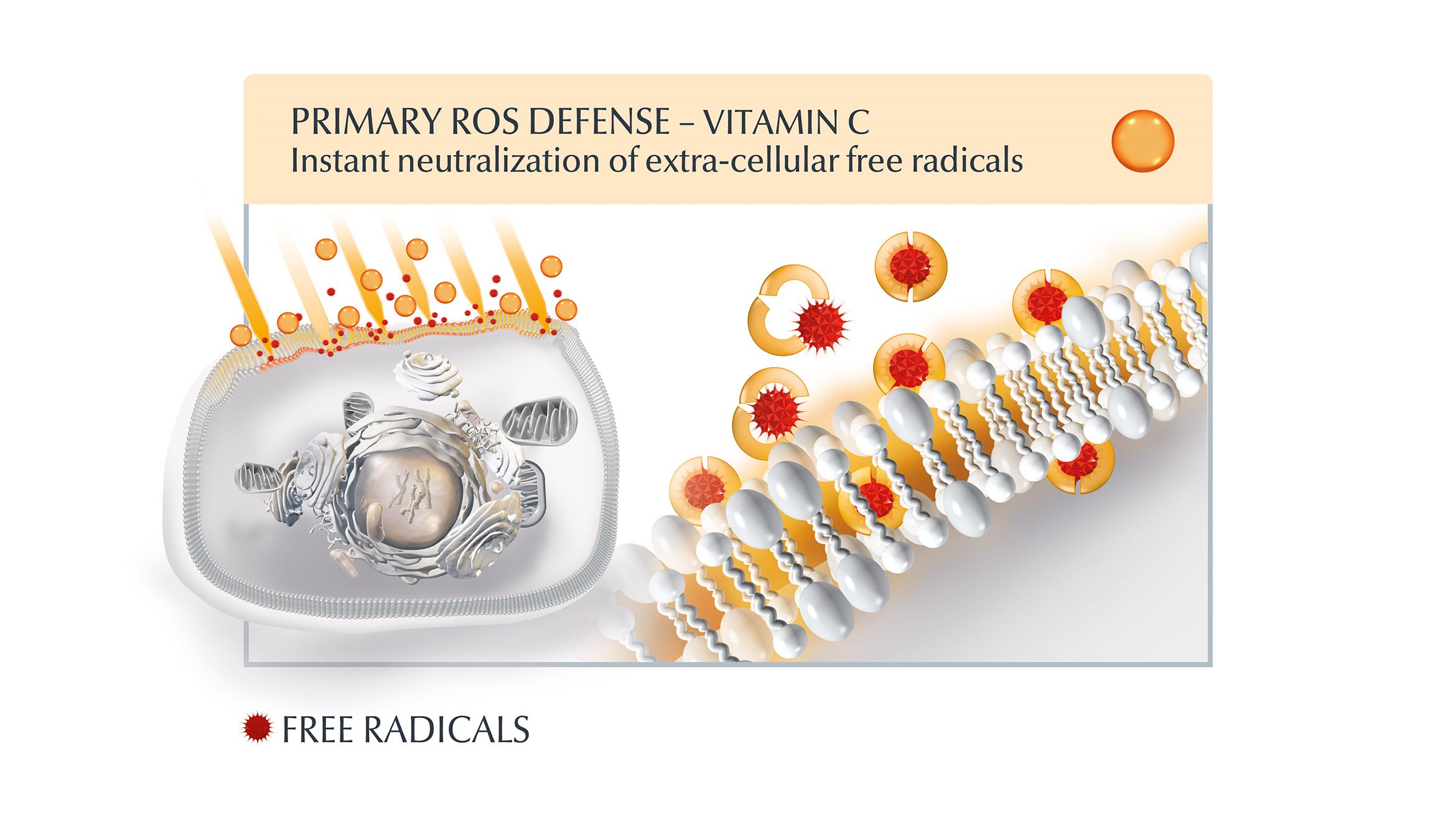 Vitamin C и Ликохалкон A се допълват като антиоксиданти, като действат в комбинация за осигуряване на биологична защита на кожата, особено когато става дума за неутрализиране на свободните радикали (известни още като „реактивни кислородни видове” или „ROS”), причинени от слънцето. Vitamin C осигурява основно защита от свободните радикали: той действа моментално, неутрализирайки свободните радикали от външната страна на клетката (външноклетъчни), причинени от UV светлината. Ликохалкон A има дълготрайно действие и в допълнение към неутрализиране на причинените от UV светлината свободни радикали спомага за намаляване на свободните радикали, причинени от високоенергийната видима светлина (HEVIS).