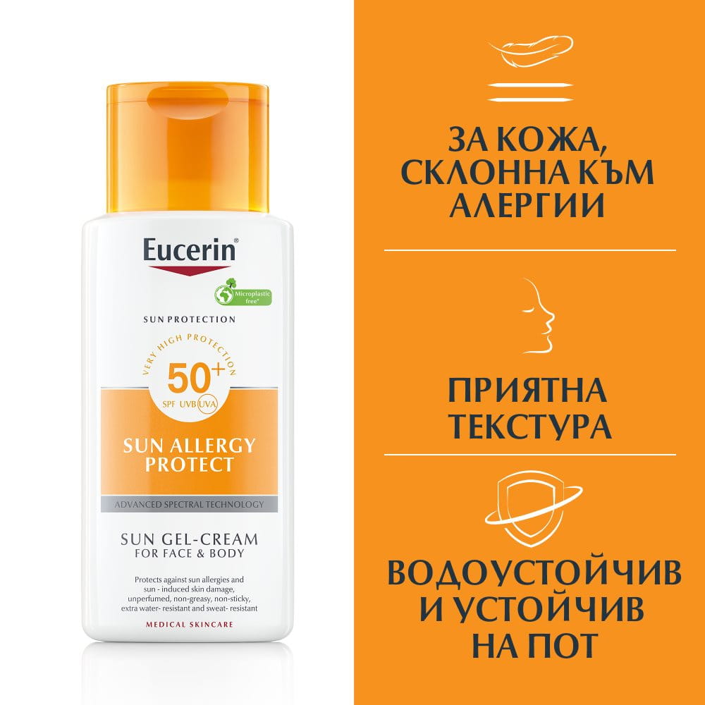 Универсален мехлем за слънчева алергия на практика не съществува. Ако сте силно пострадали от слънчевите лъчи, опитайте Eucerin Sensitive Relief – гел-крем за след слънце. Той обаче не е лечебен мехлем за слънчева алергия. В случай че страдате от силно изгаряне, е добре да се консултирате с лекар, който да ви предпише лекарствен препарат. Ние от Eucerin винаги препоръчваме превенцията. Преди излагане на слънце използвайте подходящ антиалергичен слънцезащитен крем. Eucerin SUN ALLERGY PROTECT SPF50+ ще ви впечатли с резултатите си.
