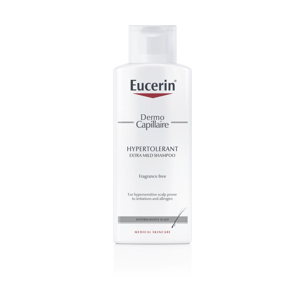 Eucerin DermoCapillaire шампоан за чувствителен скалп за чувствителен скалп и Eucerin DermoCapillaire шампоан за хиперчувствителен скалп за хиперчувствителен скалп са разработени без дразнещи съставки и осигуряват нежното почистване и грижа, от които скалпът се нуждае. Научете повече за нежните шампоани или хипер-толерантните шампоани.